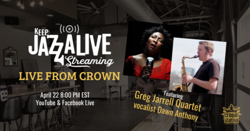 Tune in Thursday April 22, for vocalist Dawn Anthony and saxophonist Greg Jarrell, Live from Crown.